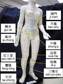 Anaylsis: zhong-ji is for regulating Conception and Thoroughfare Vessels; xue-hai and tai-chong can relieve liver stagnation; san-yin-jiao stimulates blood circulation, and shen-yu enriches yin and reinforces kidney functioning.