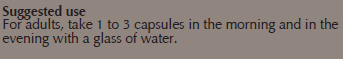 Suggested Use of a health supplement includes the quantity to be taken or the amount to be used, the frequency and timing of administration, and the route of administration. While most supplements are meant to be taken orally, a few are applied topically. The information is important for optimal absorption of health supplement by the body. If only a dosage range is suggested, it is recommended to contact the manufacturer or distributor and ask what dosage would be most suitable for you, or what is the initial dose to start. If this is not possible, it is always advisable to start with the lowest suggested dose and work up to the maximum dose while observing for health benefits and potential adverse effects.