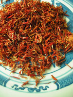 紅花6g,黑豆50g,紅糖60g。前2味先水煎,煎好後加紅糖,熱服。治肝腎不足型閉經。