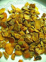 閉經方(1) : 取茺蔚子、晚蠶砂各150g,備黃酒100毫升。先將茺蔚子、晚蠶砂入鍋炒熱,再撒入米酒拌炒片刻,將炒熟的藥末裝入布袋中,紮緊袋口。待觸之不燙手時, 熱熨小腹部至袋中藥冷,再取另一袋再熨,連續兩次後,蓋被靜臥半天,月經將下。主治閉經伴有腰腹脹痛、頭暈、周身乏力等。